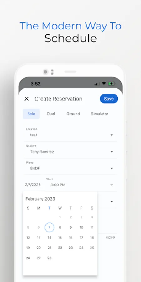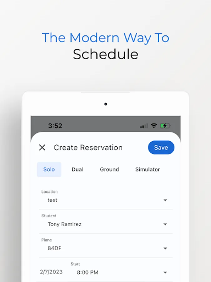 AerScheduler is free scheduling software for flight schools, flight clubs, and aircraft owners. Create an organization, add your planes, invite renters, and start scheduling.