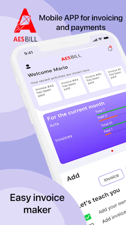 "AESbill Invoice Maker" - is a fast and easy application for creating and sending invoices. Track finances, billing and payment.