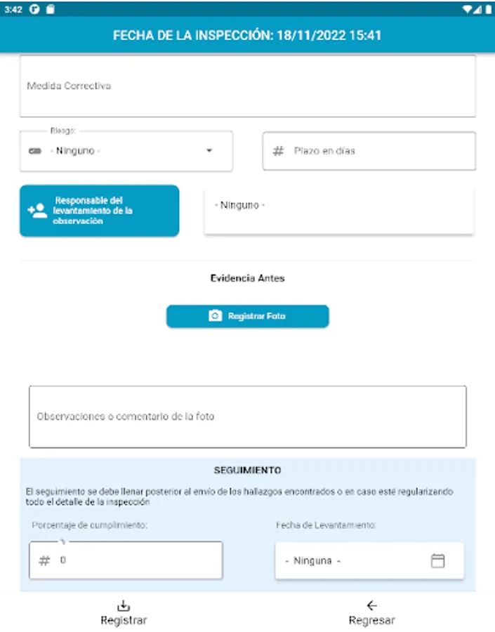 The application allows multi-user work and each supervisor user can access the filling of the configured formats. The information collected in the forms can be signed by the actors and those responsible for the supervised areas, and evidence such as photos or additional comments can also be collected on the forms.