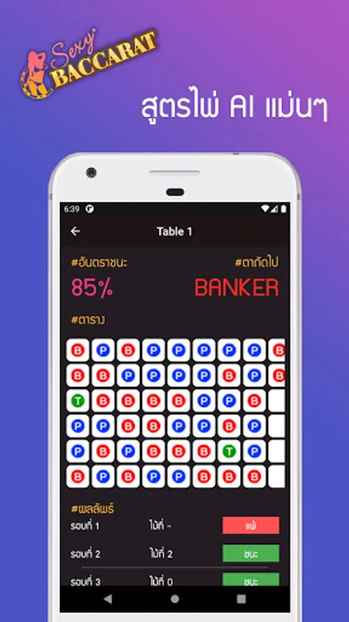 Sexy Baccarat formula. Accurate, like being in an inside circle. That will make you stop using other Baccarat formulas if you try this Baccarat formula. Tell all the information in one screen from the AI system. No need to write down the formulas yourself.