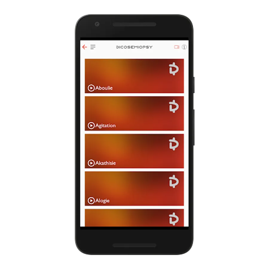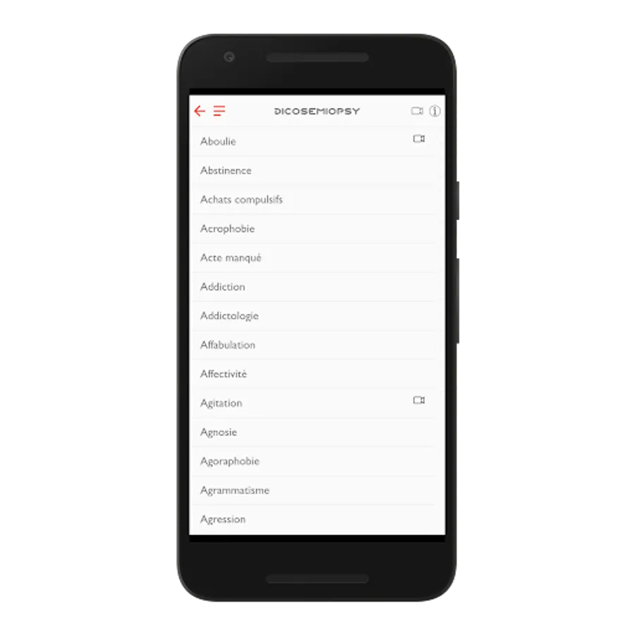 Psychiatric disorders are part of the first diseases that received precise clinical descriptions. The result of this long story a certain heterogeneity of terms. Thus, according to current thinking, the same term may designate more entities and many synonyms can coexist to describe the same clinical phenomenon. Based on the major reference works internationally in discipline, DICOSEMIOPSY application includes the definition of more than 300 terms used in psychiatry and a video illustration for key signs and symptoms through skits tours with professional actors . Definitions used in this application are in perfect harmony with the programs and the official media of the first studies and postgraduate medical studies in France.