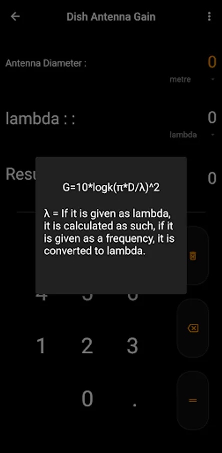 Bu uygulama antenlerin sinyal hesaplarının yapılması için kullanılabilir. Ayrıca kullanılan formülleri sağ üstteki üç nokta işaretinden görebilirsiniz. Uygulama zamanla gelişecektir.