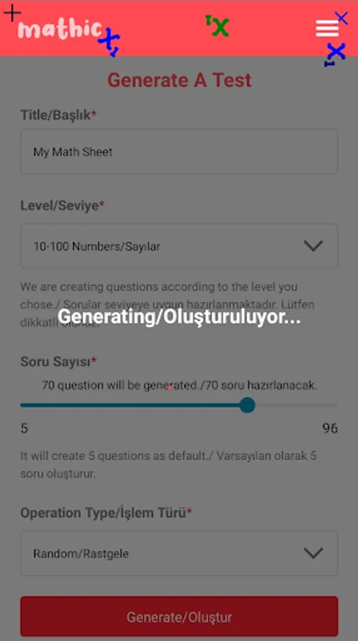 Using Mathic provides you random math operations for your class. In this way you can generate random math operations and extract them as PDF file to print it.