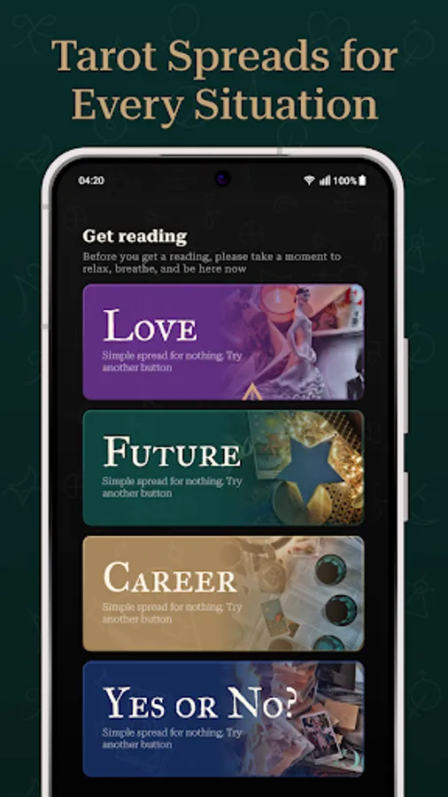 - "Yes or No" Tarot: Get immediate answers to problematic questions.