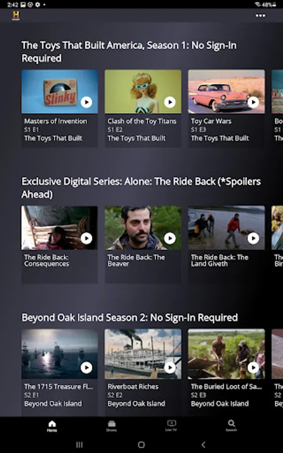 Stream your favorite HISTORY TV shows on your favorite Android device.