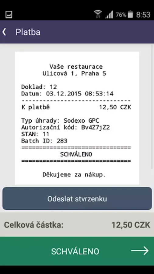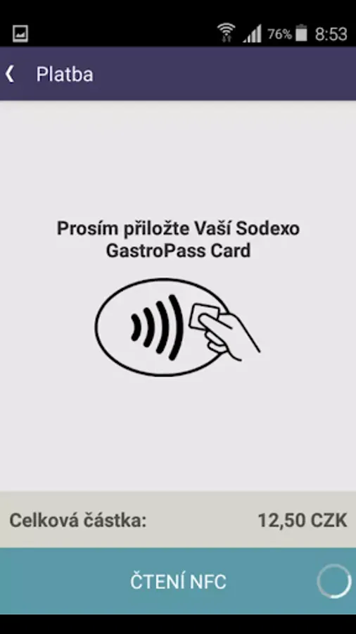 The application enables the acceptance of the Gastro Pass CARD meal voucher card, the Flexi Pass CARD leisure card and the acceptance of payments from the Mobile Payment application from Sodexo Pass Česká republika a.s. The application is developed for NFC devices with Android OS.