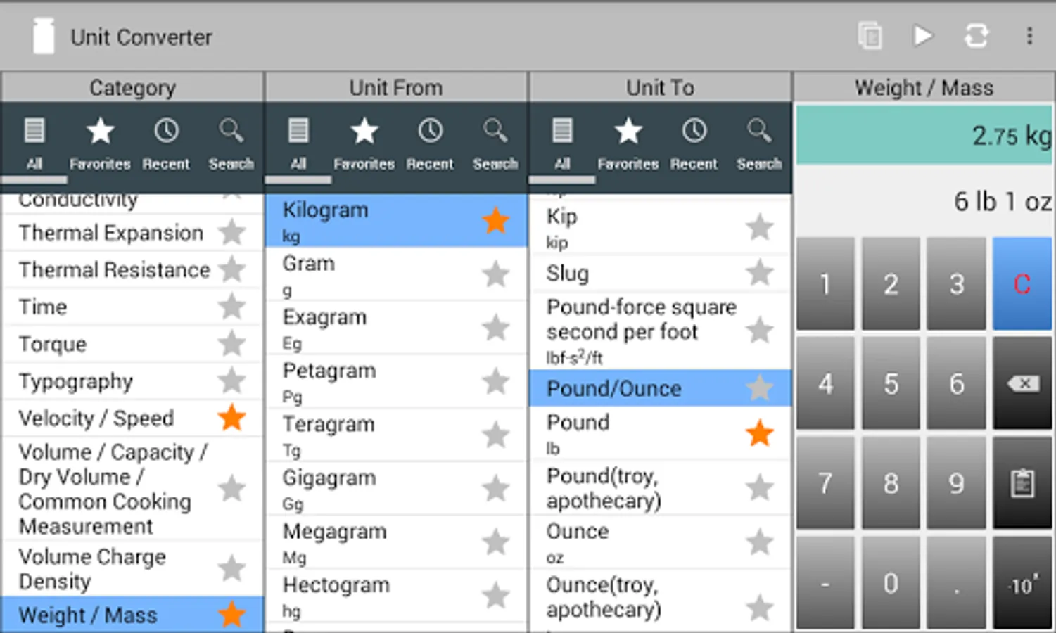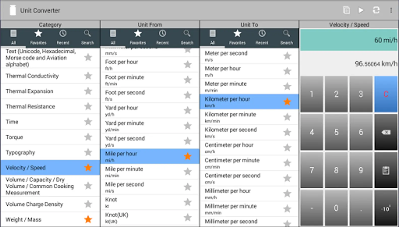 The Aevumsoft Unit Converter is both user-friendly and powerful. It contains 2000+ units in 90 categories. All these units and categories are conveniently accessible through an easy-to-use, professional user interface which has been optimized for both phones and tablets.