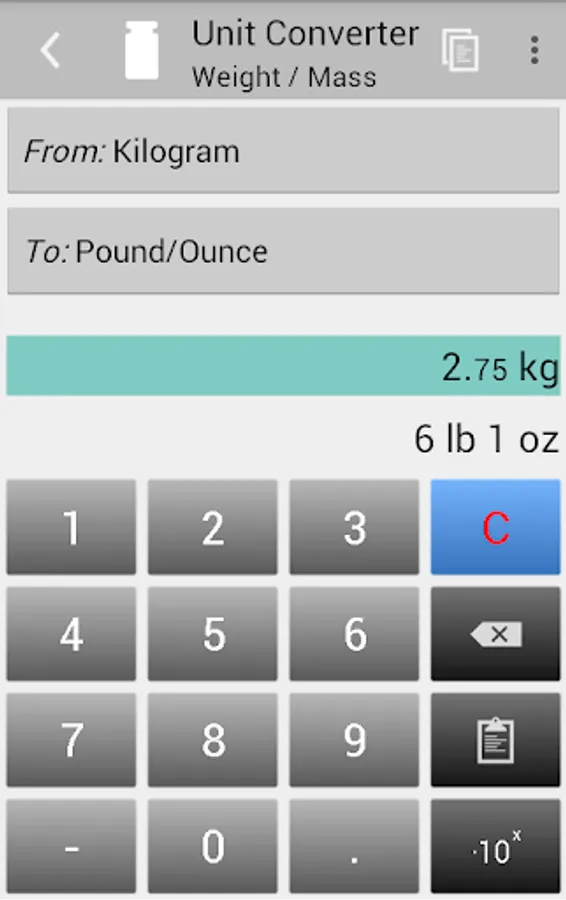 Conversion results appear instantly while entering the input data. There is no need to switch screens or to press a button to obtain results.