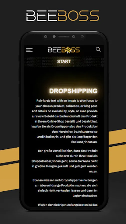 BeeBoss is an e-commerce company. We create individual sales platforms to give you your turnkey online shop with all the tools and tricks you need in the shark tank of online trading.