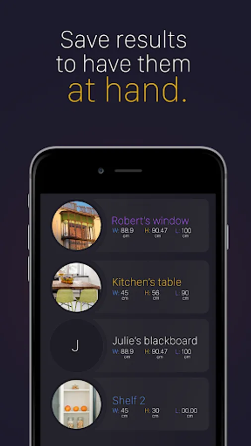 - Save & store your measurements in the app