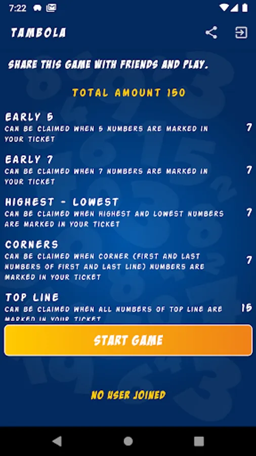 5. If you are first one to get 5 called numbers on your ticket, or all 4 corners, or all numbers in either top, middle or bottom line, then you can tap on that name to CLAIM the prize for that achievement.