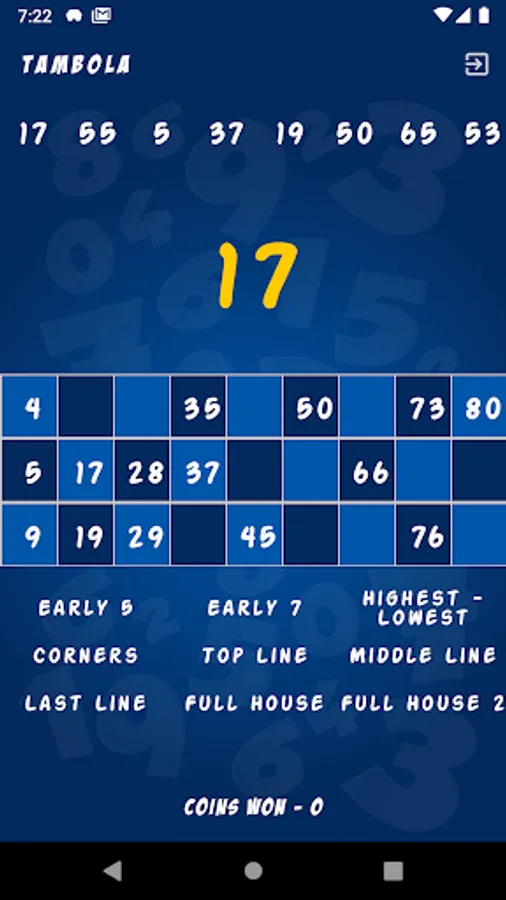 4. Random numbers between 1 to 90 will be called out. If you have those numbers you can mark them by tapping on them.