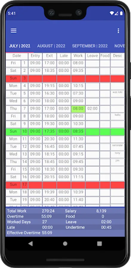 • Also Suitable for employers to keep track of each employee's work hours