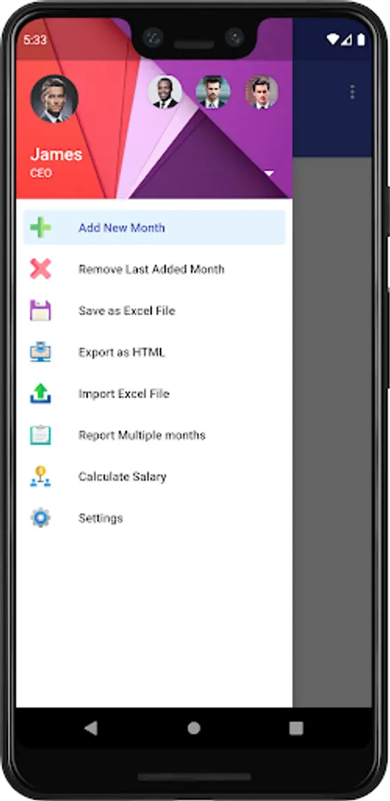 • Create multiple users with specific name, avatar, entry and exit data and