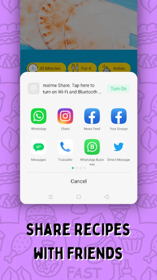 • Share recipes with friends and family via WhatsApp, Facebook, email, or any social networking site