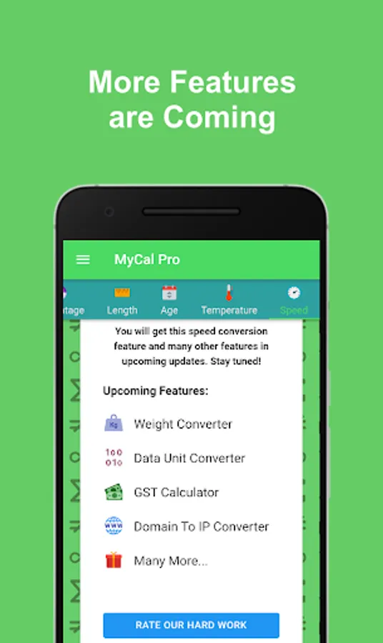 MyCal Pro - All in One Calculator & Converter is just the best and easiest to use app which calculates as well as converts. It is unique in a manner that it calculates everything on the fly. It have inbuilt calculator which seamlessly combines with it's user interface.