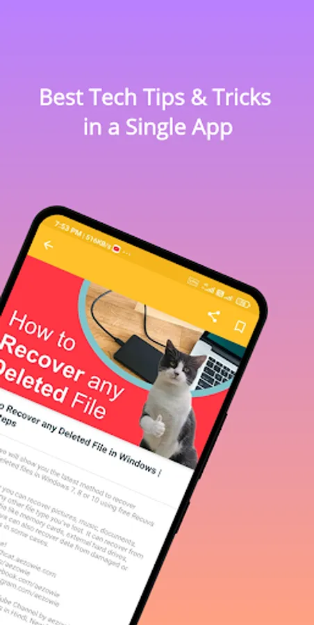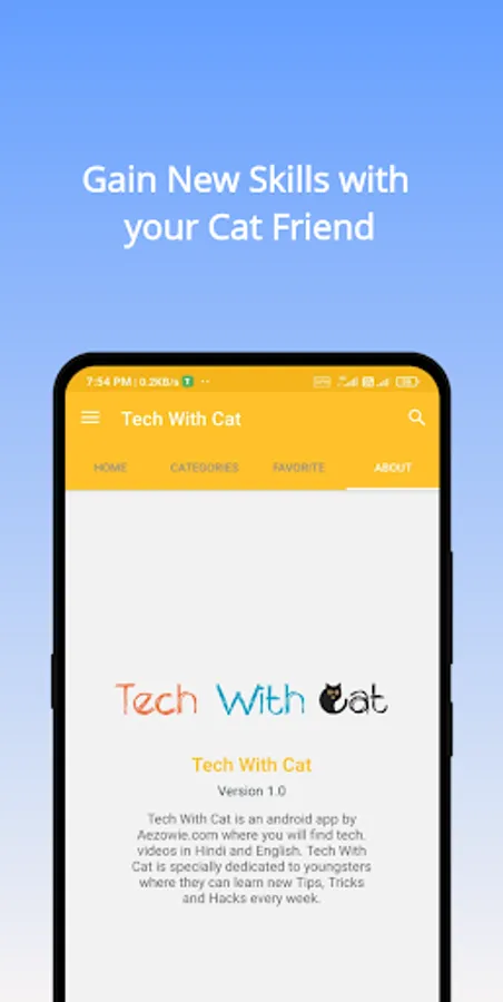 Tech With Cat is an android app by Aezowie.com where you will find tech. videos in Hindi and English. Tech With Cat is specially dedicated to youngsters where they can learn new Tips, Tricks and Hacks every week.