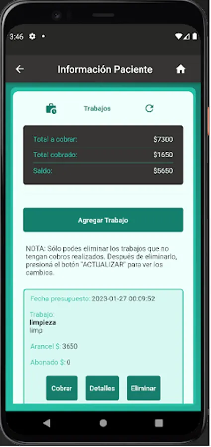 * Create Patient users with: personal data, clinical history, DENTAL CHART, work done, pending charges, charges made, photos, assign shifts, etc.