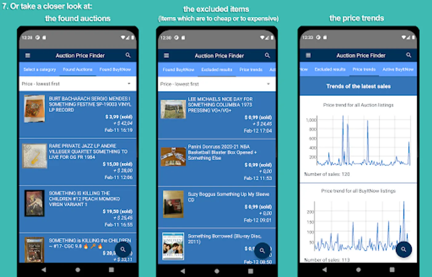 The last page shows all the excluded items. These are the ones, which were too cheap or too expensive. You can also tap on one of them, to open them on ebay.