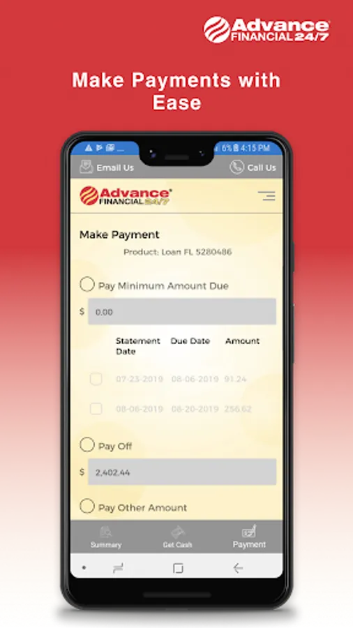 Get the AF247 app to access your Advance Financial loan 24/7 – anytime, anywhere. The AF247 app gives you an at-a-glance snapshot of your account so you always know exactly how much cash you have available.