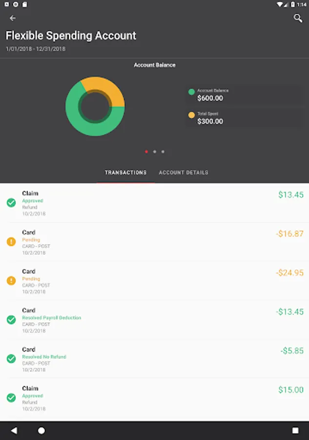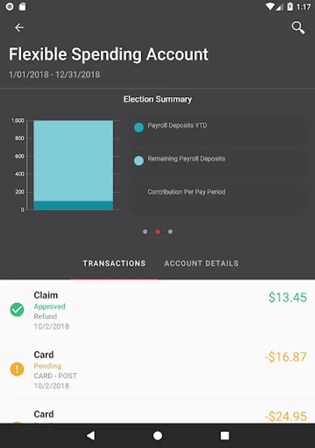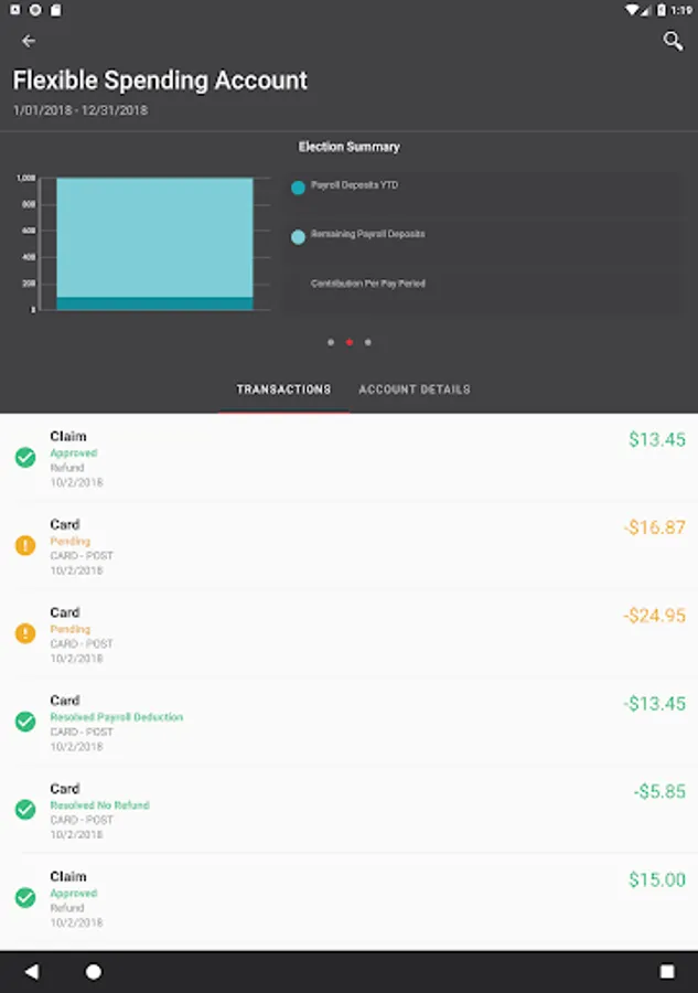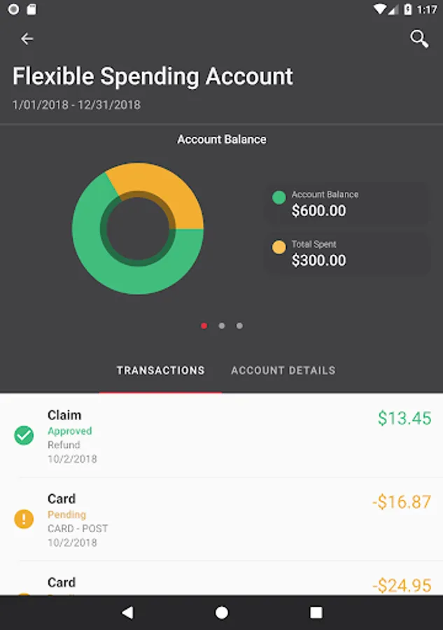 See recent Benefits Debit Card transactions and details