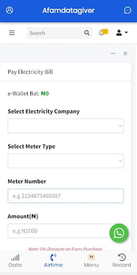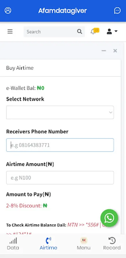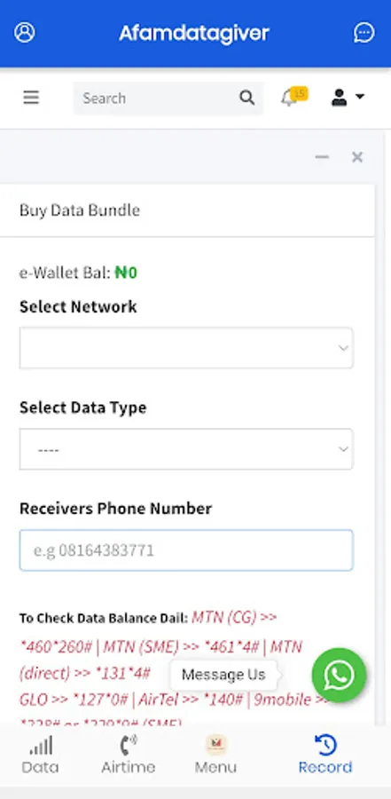 Mobile app for purchase of Data, Airtime and Bills Payment.