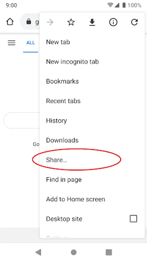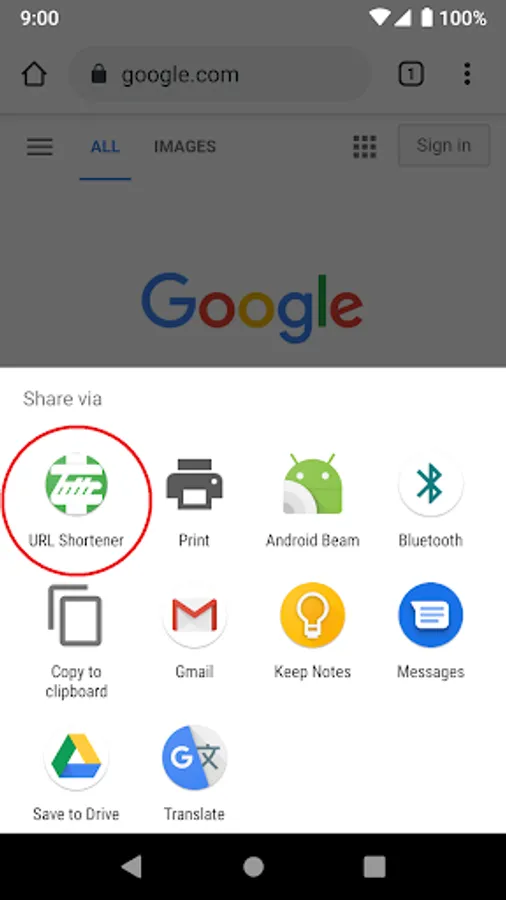 - Use the "Share" feature of the web browser to transfer the current page URL to "URL Shortener".