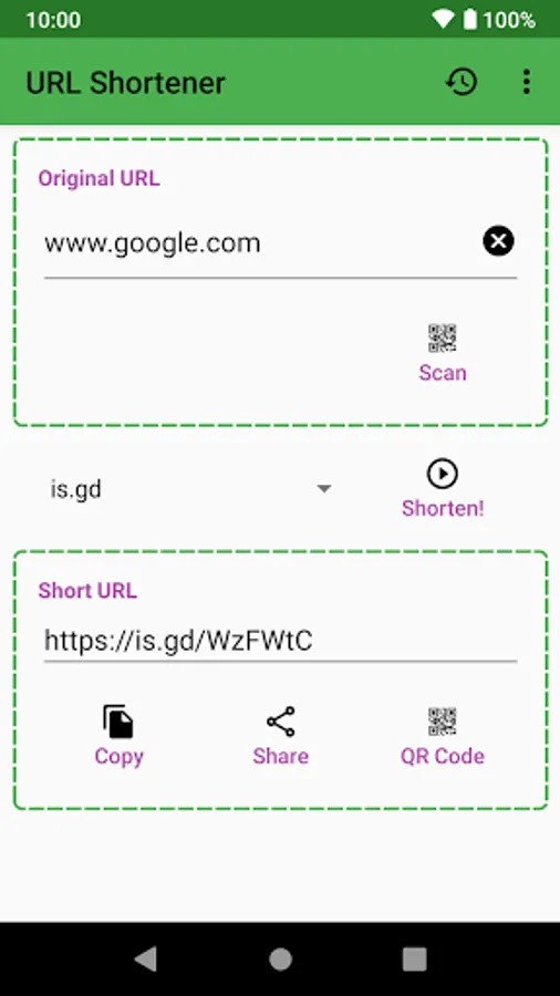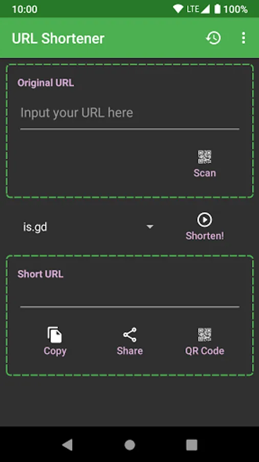- Select the URL text directly in the web browser or other text reader and press the "Share" button to transfer the URL to "URL Shortener".