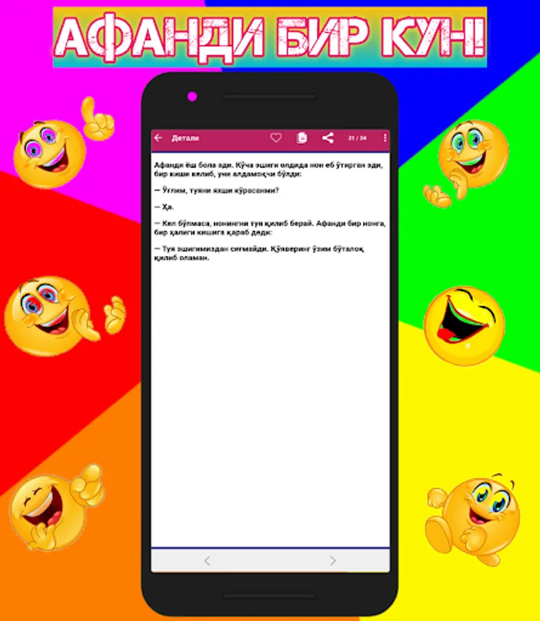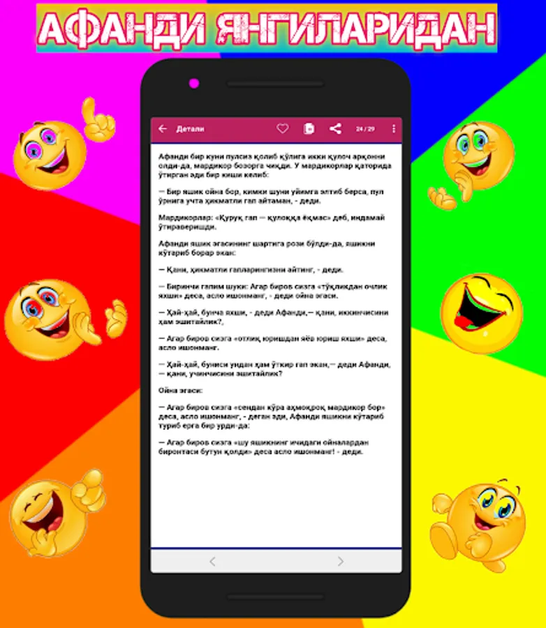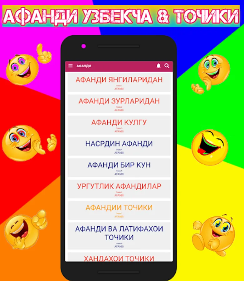 Bu dasturda siz uchun kayfiyatingizni kutarish maksadida eng sara hit UZBEK AFANDI tarihidan saralangan AFANDIlarni yigib bir dasturga zhoyladik. Bizning dasturimizda 500 dan zietrog afandi latifalari joilashgan bulib kelajakda yana yangidan-yangi LATIFALAR kushib turish maksadidamiz!