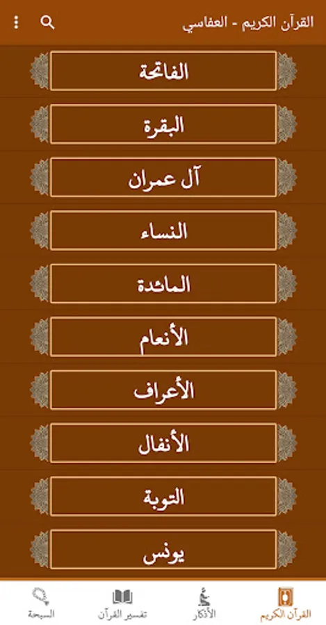 As we mentioned, the interface of the Holy Quran application, Mishary Al-Afasy audio and video, is a simple interface that enables users, young or old, to listen to the Holy Quran and use the application with ease away from complexity.