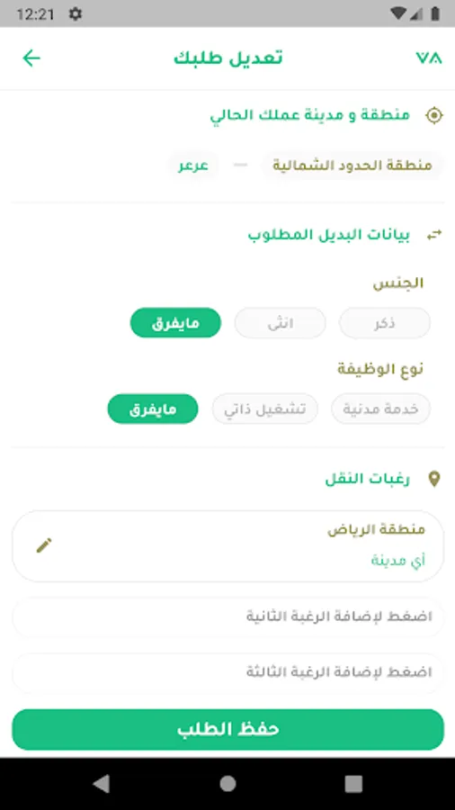 4 - Ease of use and specifying the criteria for the required alternative (classification - specialization - type of job "civil service or self-employment" - gender) and you can specify three desires for transportation. Each desire is an area, and in each area you can specify a group of cities.