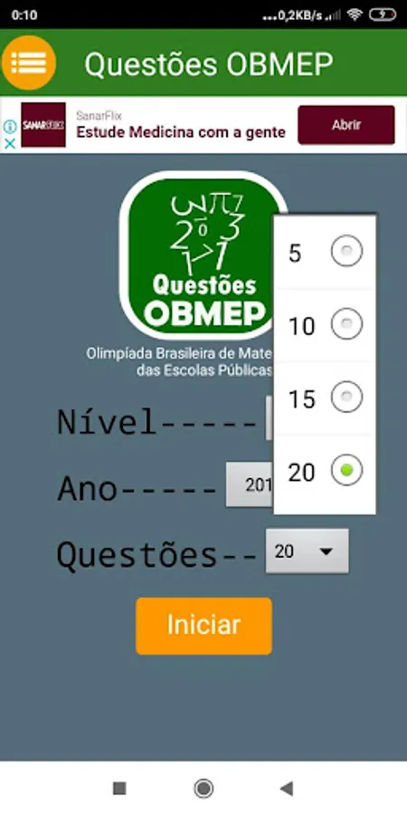 Questions of the 1st phase of the tests prior to the Brazilian Mathematics Olympiad of Public Schools (OBMEP).