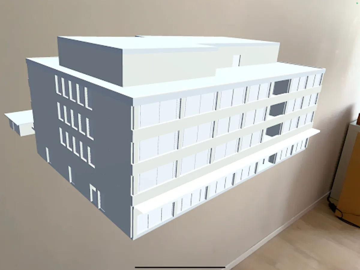 After successfully scanning an anchor point, the new buildings can be viewed.