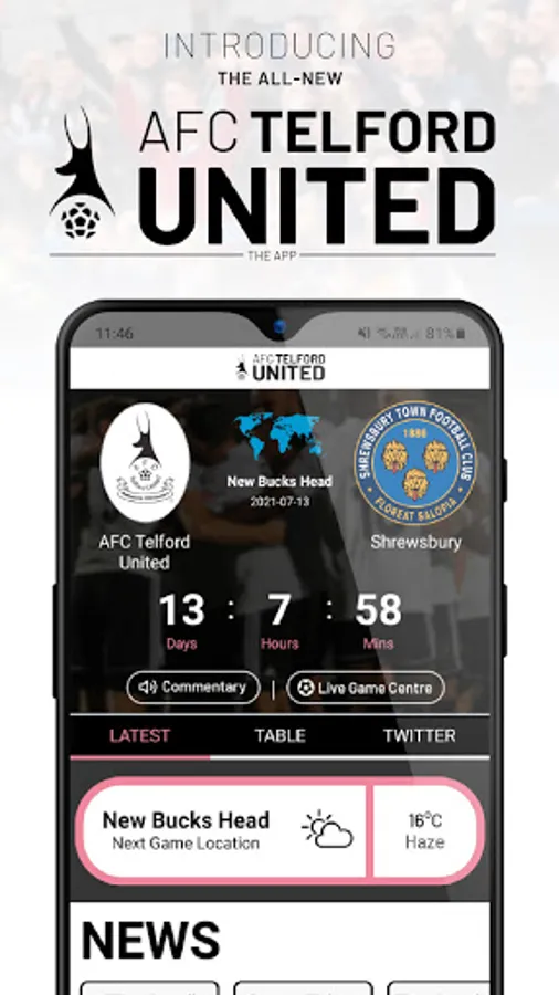This is your one-stop-shop for all things Telford United; we have a whole host of brand-new features that update you on all of the club’s current activities, with all of the latest club news, videos, live game info and much more, keeping you right at the centre of all the action!