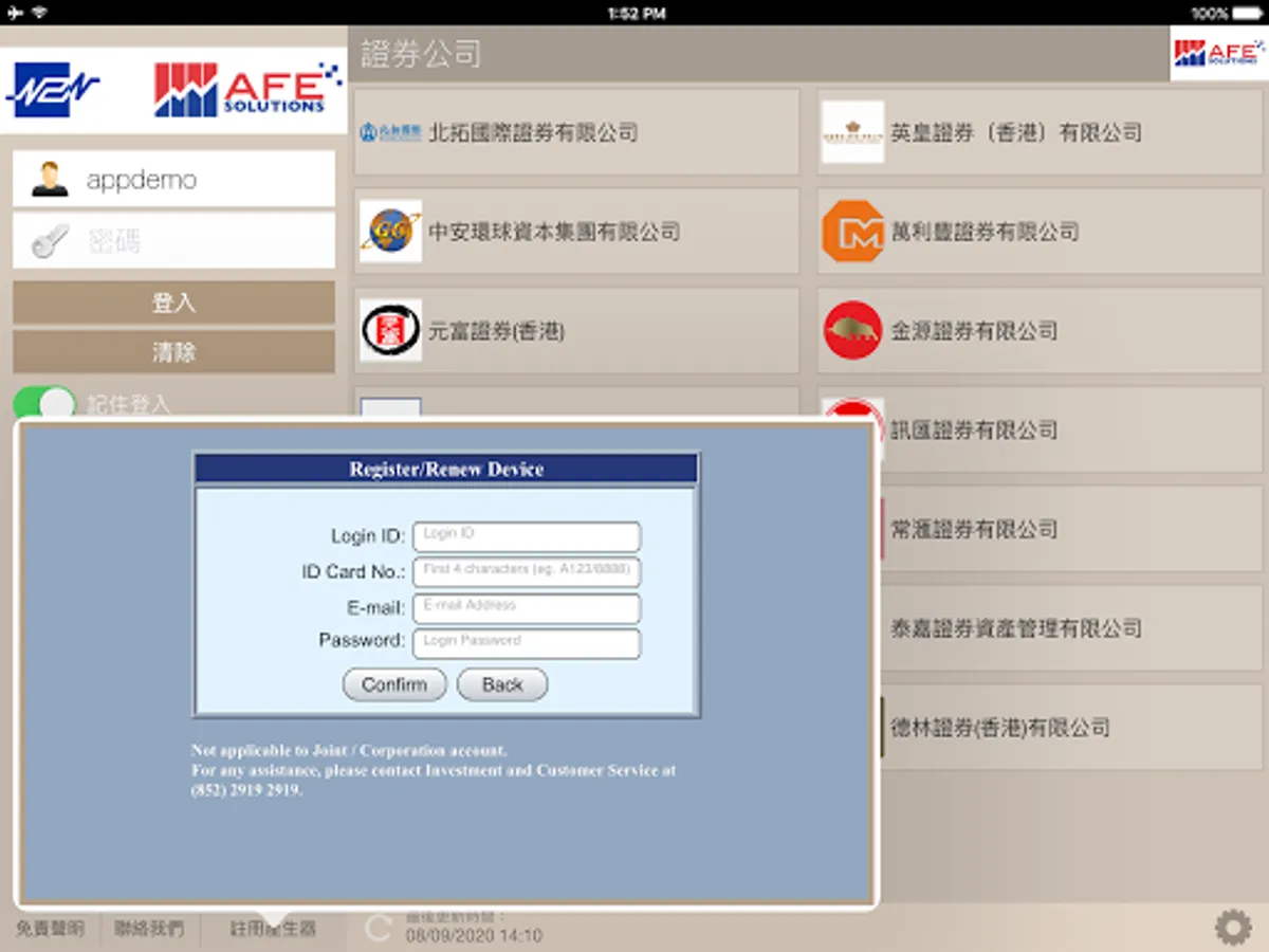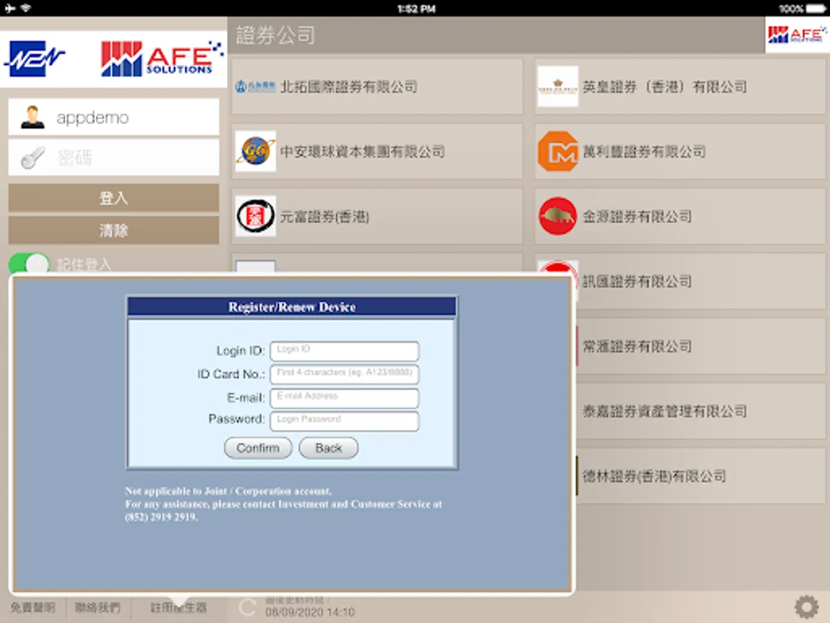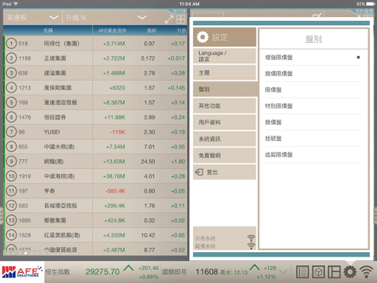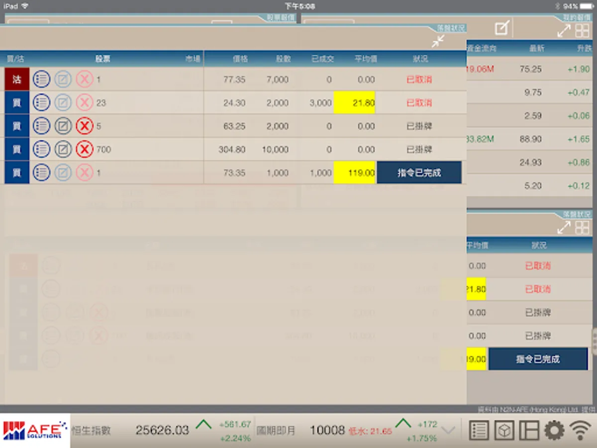 AFE Trade is a Stock Trading Platform developed by N2N-AFE (Hong Kong) Limited. Through further supporting Android tablet that provide (Single account / Multiple platforms / Anytime Anywhere) real time stock information / trading services experience.
