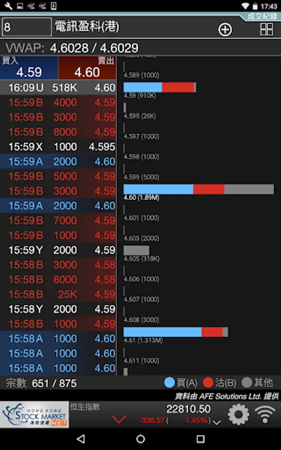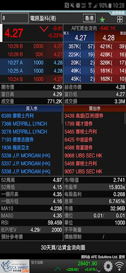 HKSMN is a new generation stock information system jointly developed by PCCW and AFE Solutions Limited. AFE Solutions Limited is the leading information provider for real-time prices, news and analytics in Hong Kong financial market. Established since 1983, AFE has been serving major brokerage firms and banks in HK with its high quality stocks market information terminals and trading systems. Among AFE self-developed exclusive AFE Real Time Bought/Sold Fund Flow that has become an indispensable and crucial reference for professional investors and traders.