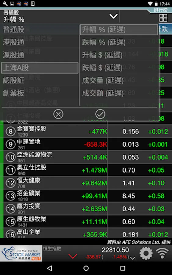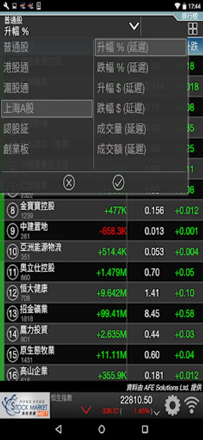 - Real-time quotation of HKEx tradable Futures, including index futures, stocks futures, Currency and Gold futures. Support open Interest, premium and cash value etc.