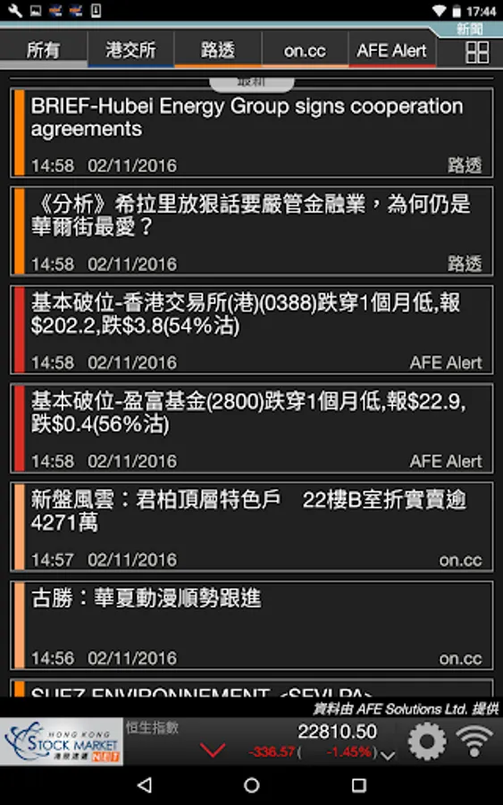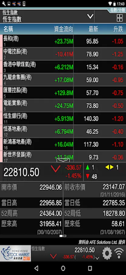 - Comprehensive self-monitoring system for about 90 Constituent Stocks of Hang Seng Index, China Enterprise Index & China-Aff Corp Index.
