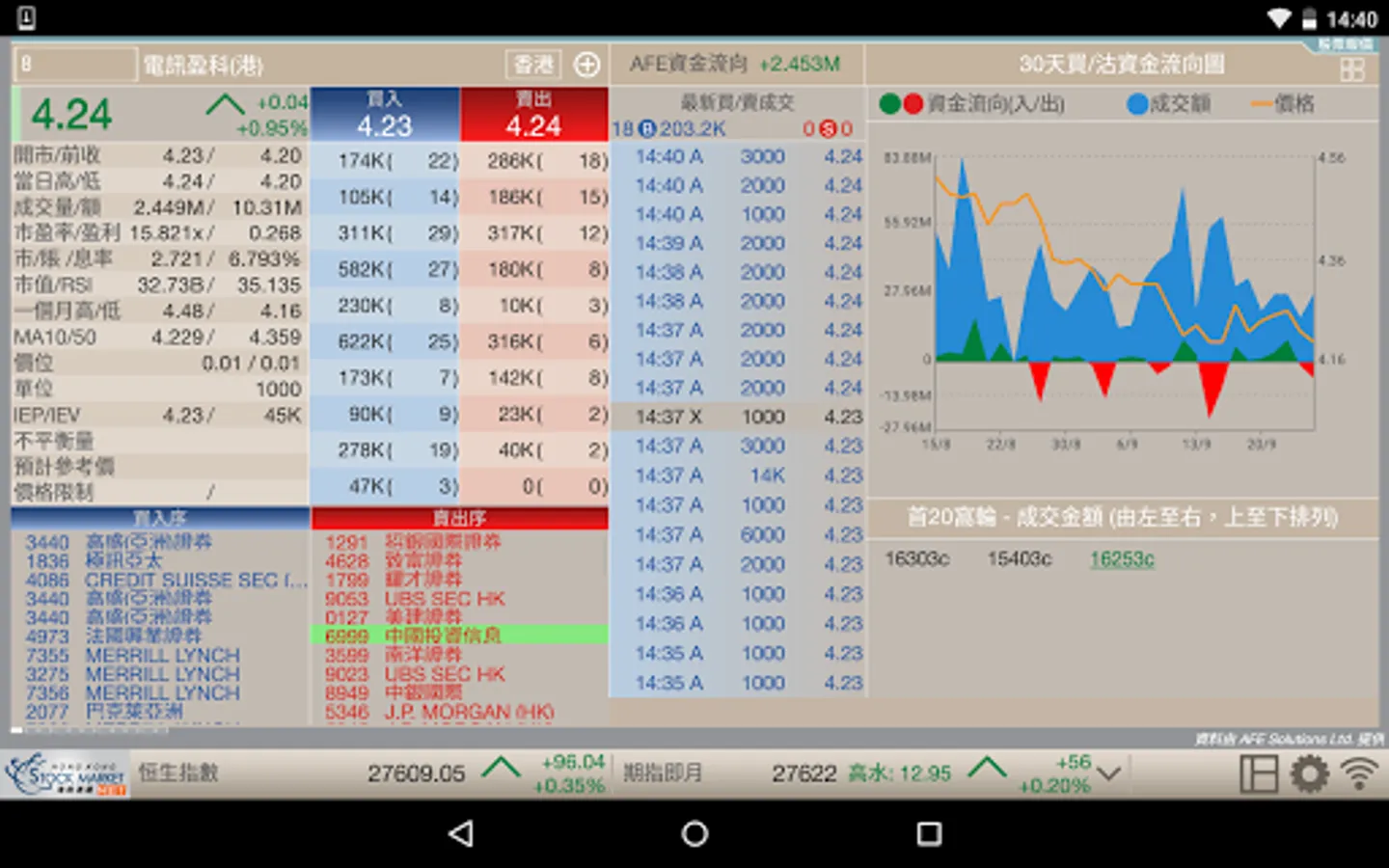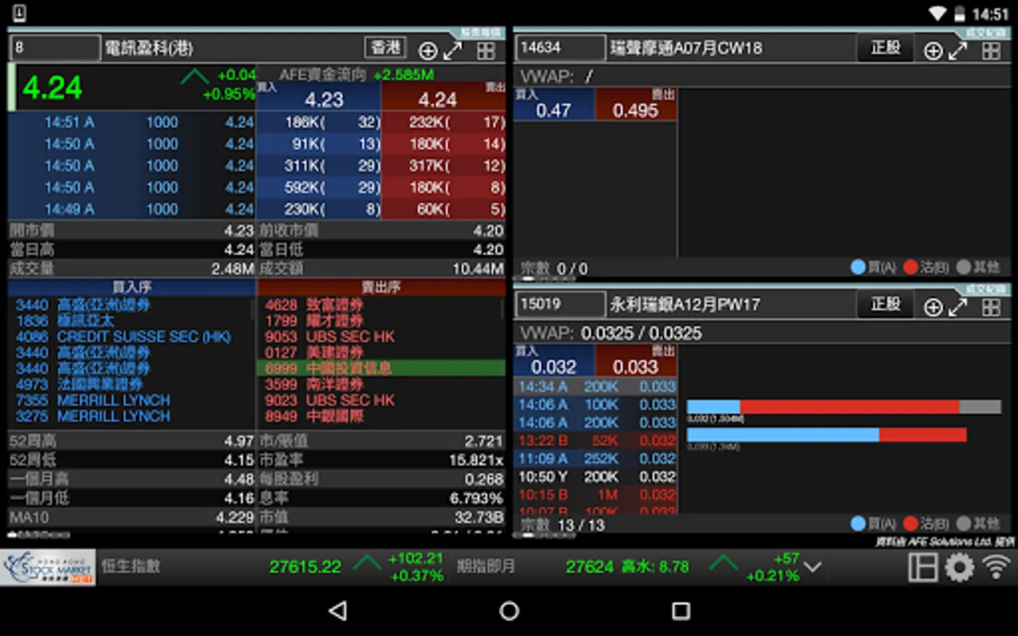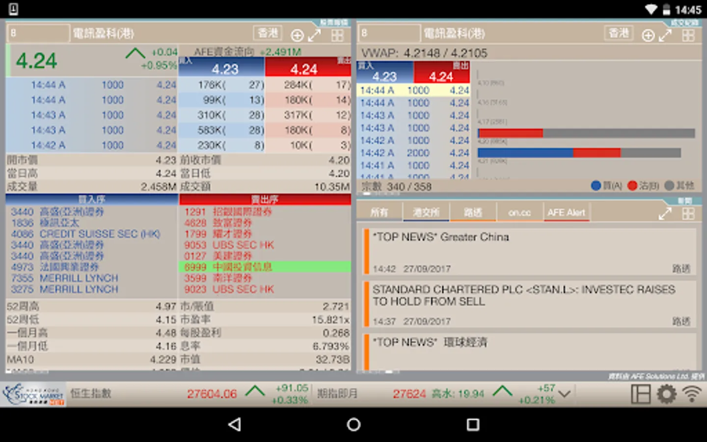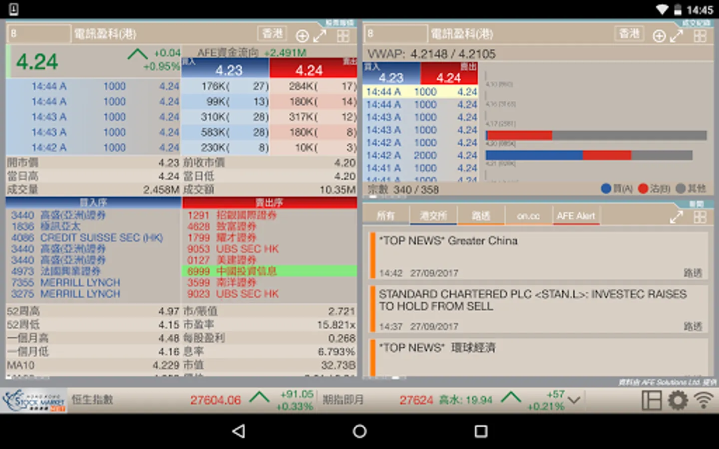 HKSMN is a new generation stock information system jointly developed by PCCW and AFE Solutions Limited. AFE Solutions Limited is the leading information provider for real-time prices, news and analytics in Hong Kong financial market. Established since 1983, AFE has been serving major brokerage firms and banks in HK with its high quality stocks market information terminals and trading systems. Among AFE self-developed exclusive AFE Real Time Bought/Sold Fund Flow that has become an indispensable and crucial reference for professional investors and traders.