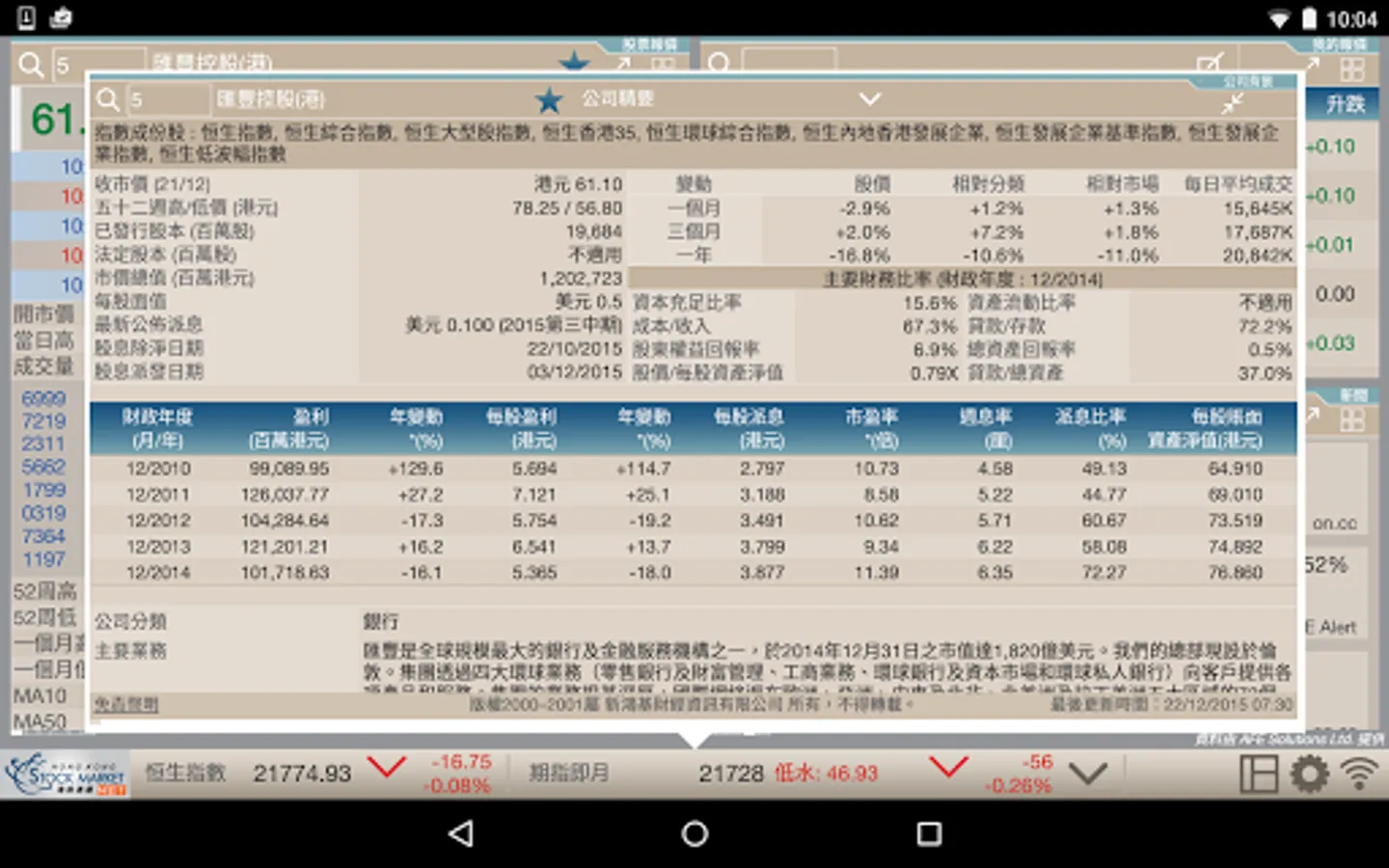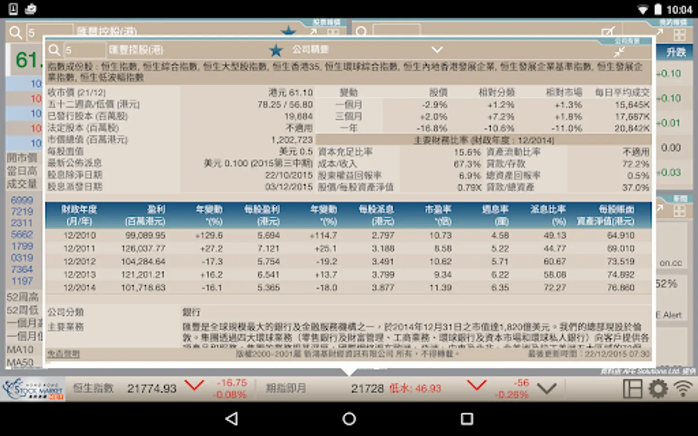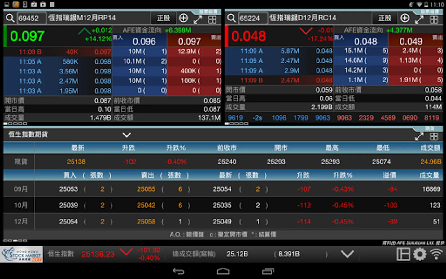 - Real-time quotation of HKEx tradable Futures, including index futures, stocks futures, Currency and Gold futures. Support open Interest, premium and cash value etc.