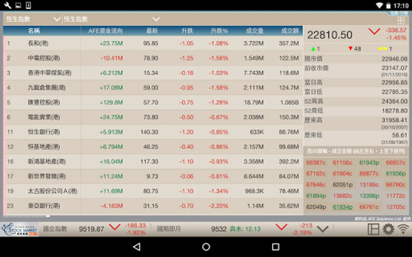 - Real-time exclusive AFE Bought/Sold Fund Flow, TOP 20 Warrants/CBBC ranking feature (by turnover) the most active Warrants/CBBC in the market.