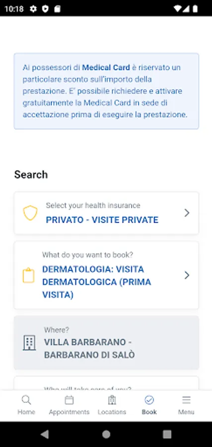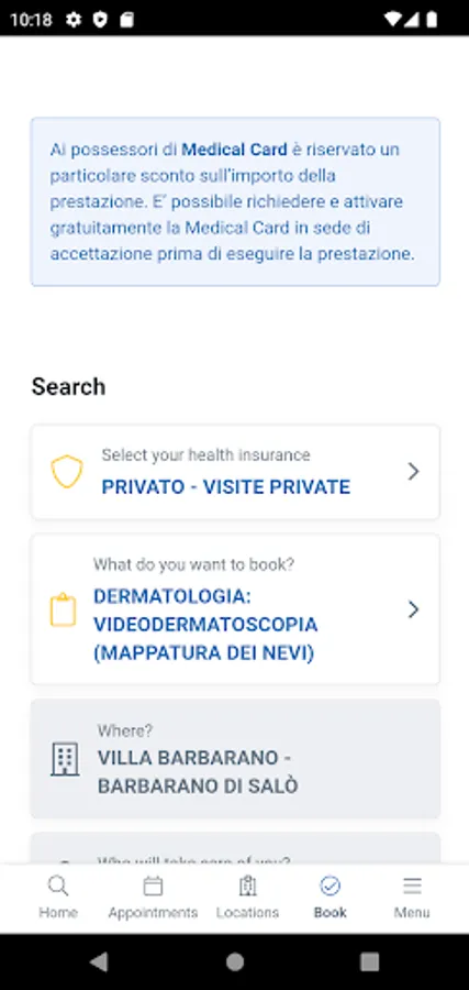 App for booking visits and exams at the Villa Gemma and Villa Barbarano facilities.