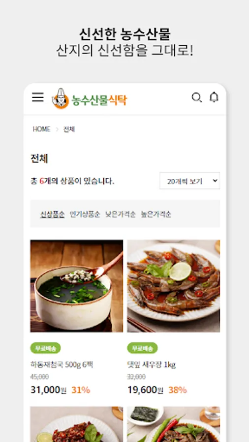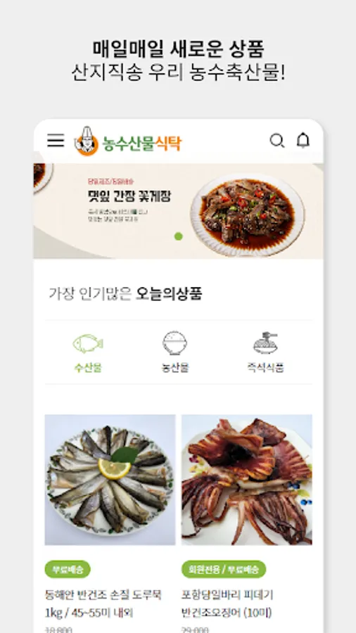 Agricultural and fishery products table is an application that allows you to easily order fresh new agricultural and marine products every day.