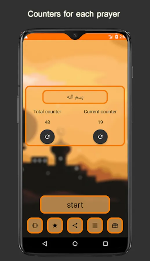 2. Has a counter for each prayer. for each prayer you have 2 counters. the current counter and the total counter