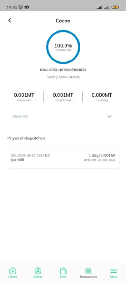 Log cash received for incoming goods as well as pay farmers and traders out of prefunded account