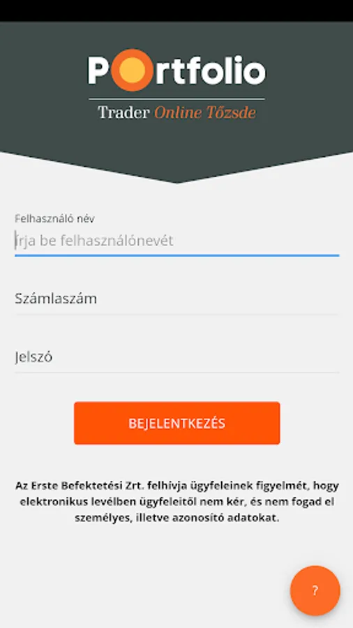 To use Portfolio Online Stock Exchange GO, a Portfolio Online Exchange Service Agreement with Erste Investment Ltd. is required. If you do not already have one, you can find help on this page: http://trader.portfolio.hu/online-tozsde/reszvenykereskedes