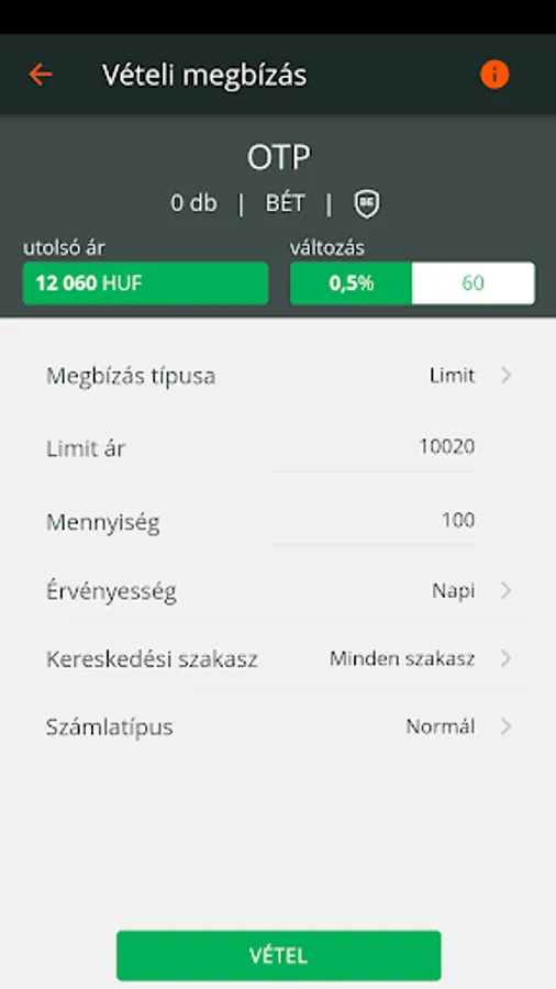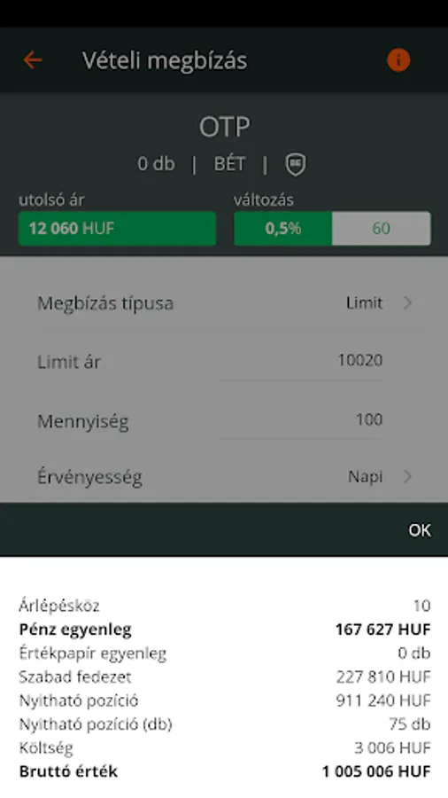 - Order entry / modification / cancellation for shares, ETFs, certificates and warrants admitted to the Budapest Stock Exchange