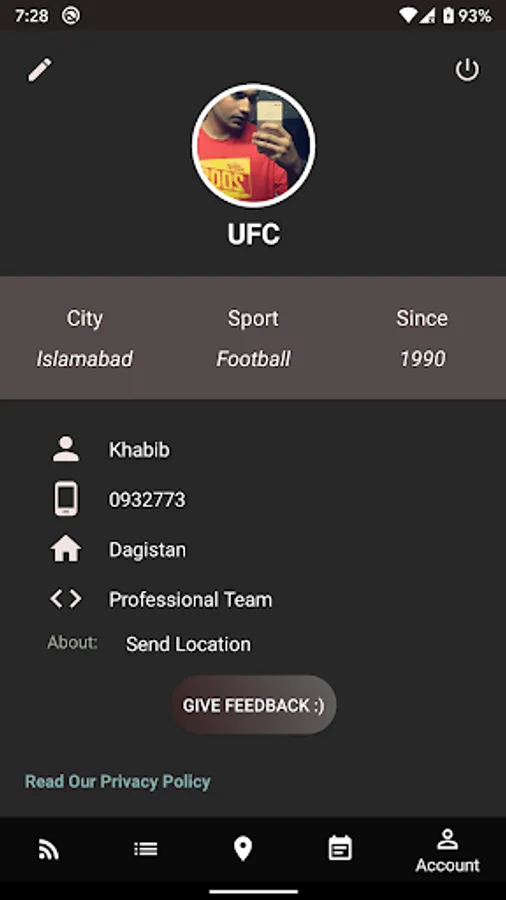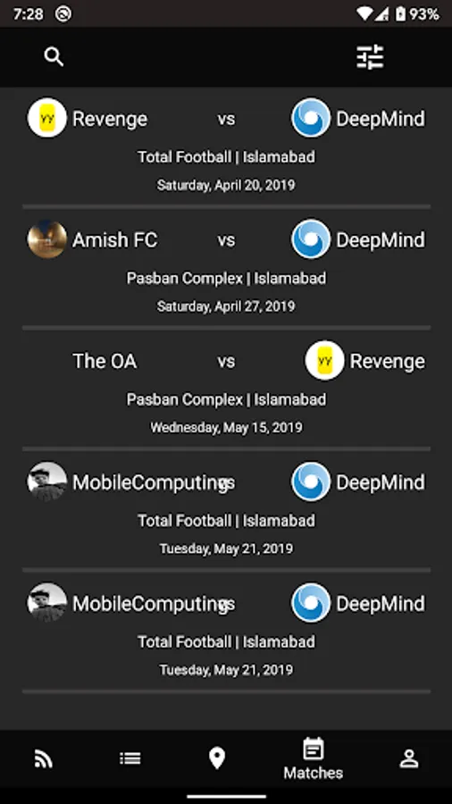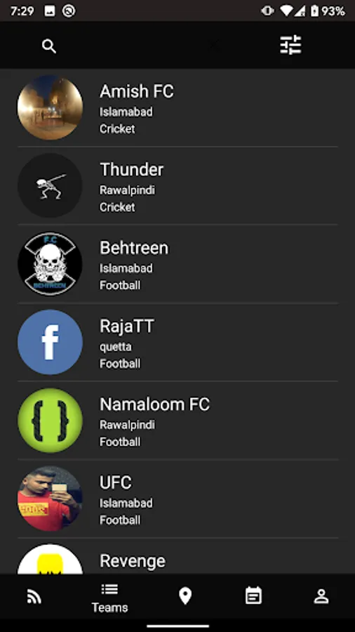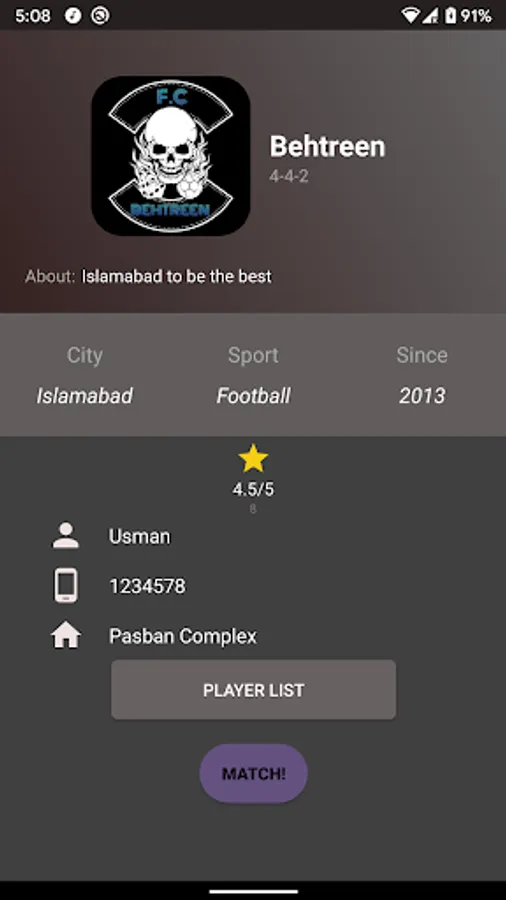 This app allows you to register yourself so that other teams can contact you for a match.