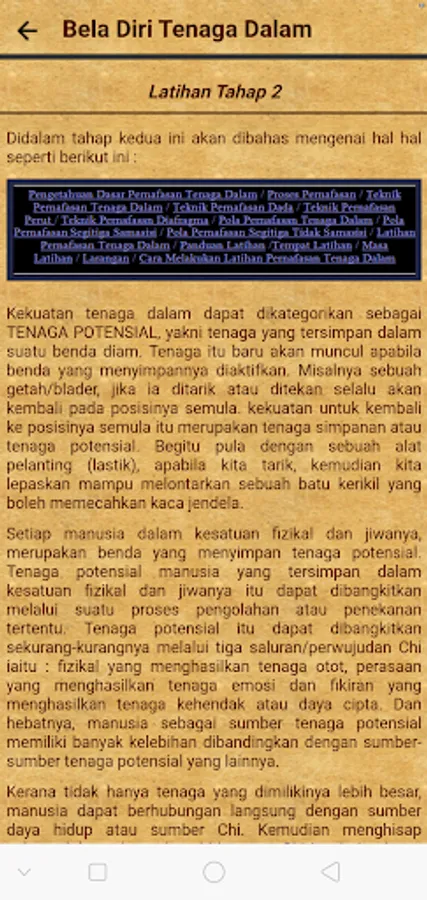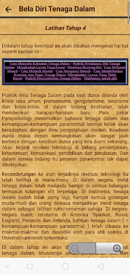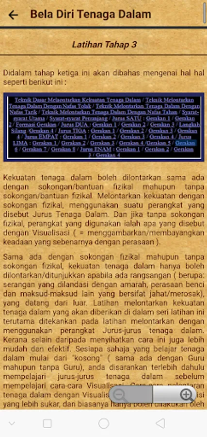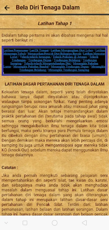 The Internal Self-Defense Learning Application is an application that provides an explanation of the stages of learning Internal Self-Defense, the training consists of 4 stages:
