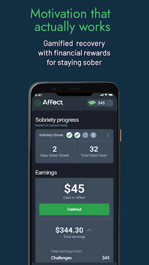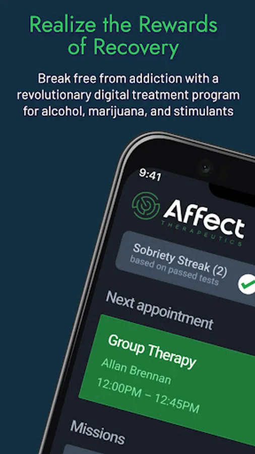 Affect is more than a sobriety app or sober tracker. It is the first integrated all-digital addiction recovery program to offer professional support and financial rewards as you succeed in treatment. You don't have to go to rehab to stop drinking and using drugs. Affect puts a full treatment program right in your pocket.